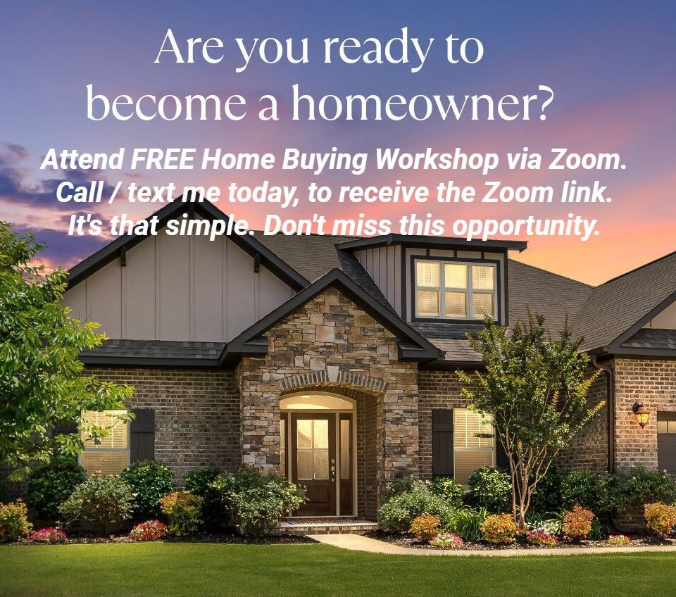 Attend FREE Home Buying Workshop via Zoom. Call, text, or Sign up today, to receive the Zoom link.